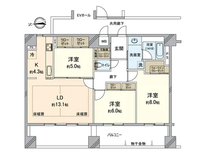 〇地上12階建、5階部分専有面積86.97平米3LDKのお部屋