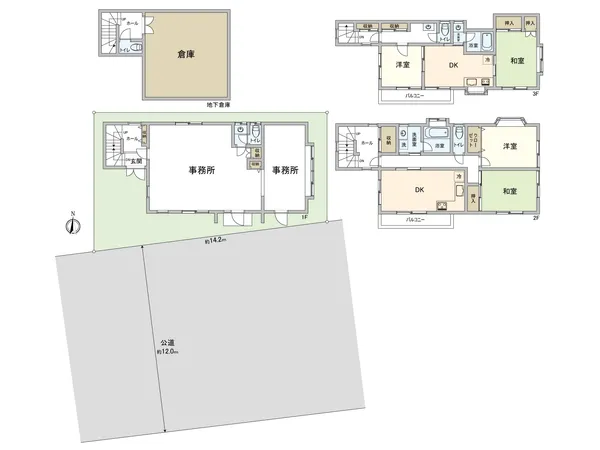 ・間取詳細/2DK×2+事務所×2+地下倉庫
