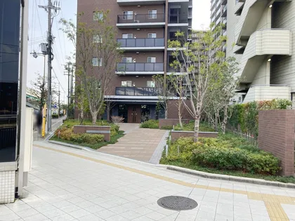 緑を配したエントランスアプローチ