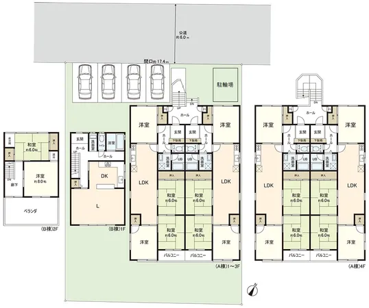 マンション1棟:4LDK×8戸 借家1棟:2LDK×1戸