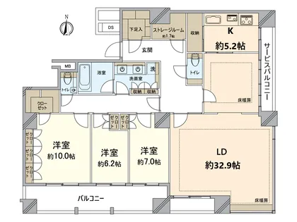 ・LDK約38.1帖、リビングダイニングに床暖房設置