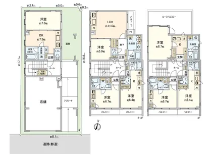 〇 1階店舗、1K×7戸、1DK×1戸、1LDK×2戸