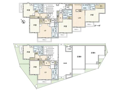 〇 1K×7戸、1LDK×7戸+1F店舗2戸