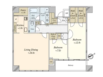 <間取り :2LDK+3WIC+SIC+Pt>