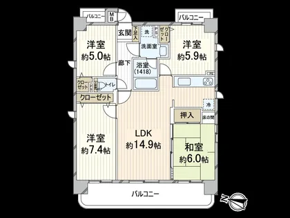 バルコニー面積 14.71m²