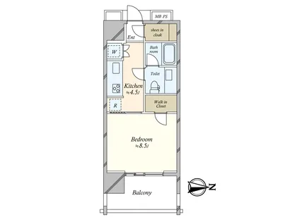 ・専有面積33.77平米、1Kの間取り