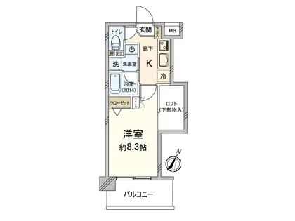 ・独立洗面台、ロフト(下部物入有り)付の1Kタイプ
