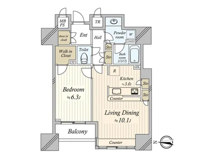 専有面積にはトランクルーム面積0.67平米を含みます。