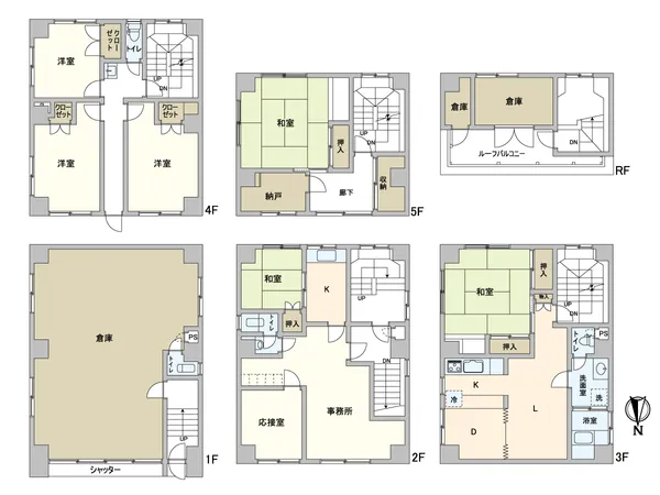 ○間取5LDK+事務所スペース(和室有)+倉庫