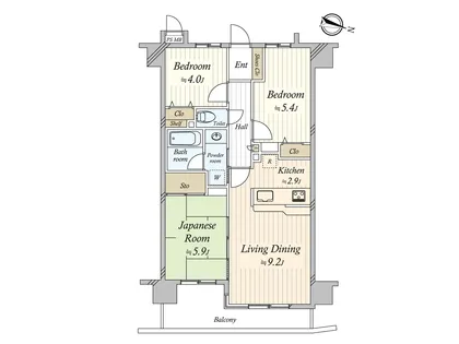 ・約5.9畳の和室はバルコニーに面していて、明るく風通しの良い快適な空間です