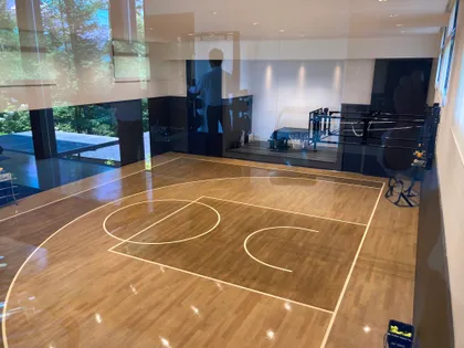 屋内にはバスケットボールコート・ステージ有