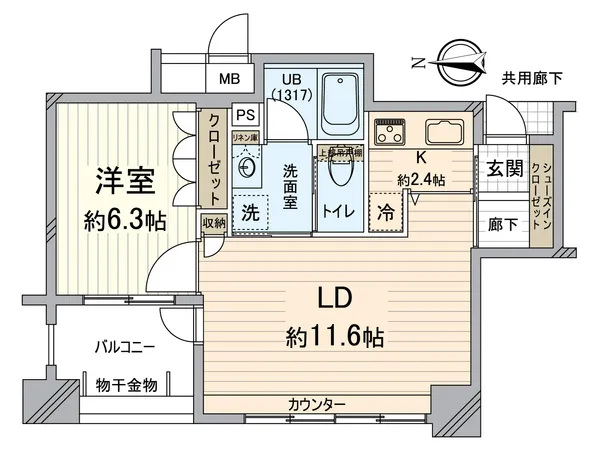 〇専有面積46.12平米の1LDK