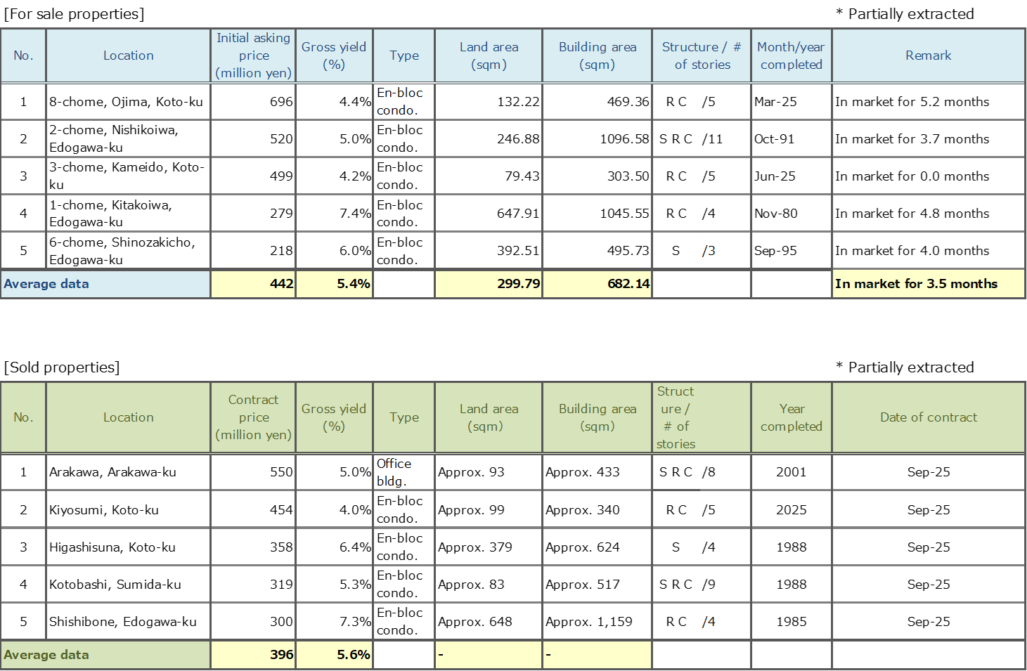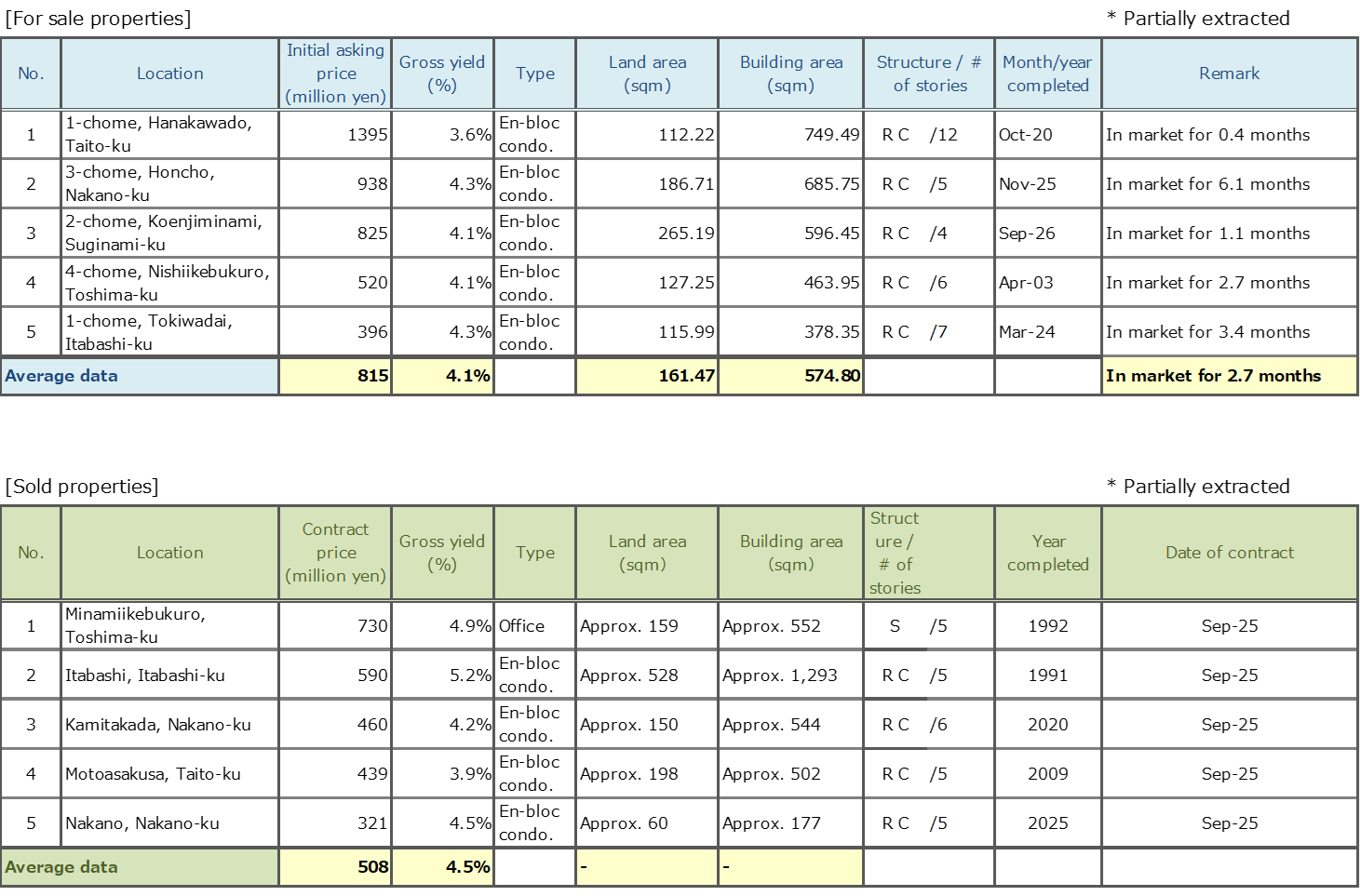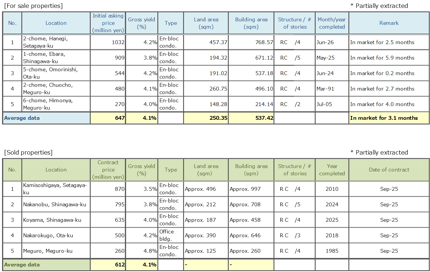 Data Source: Information is extracted from the database containing properties offered for sale and contracts concluded through Mitsui Fudosan Realty Network (En-bloc condominiums / office buildings / apartment buildings).
