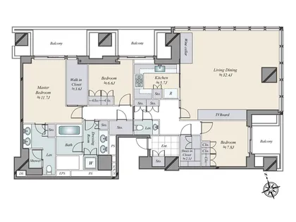 RC造 / 2022年1月築 (築4年) 専有面積: 170.32m² (約51.52坪) 3LDK所在地 東京都港区愛宕1丁目 交通 東京メトロ日比谷線虎ノ門ヒルズ駅 徒歩2分